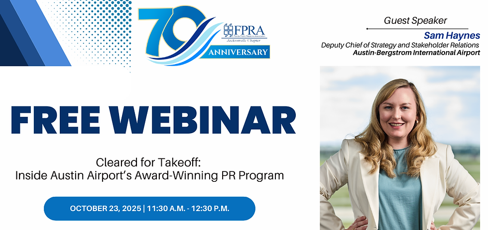 The Jacksonville Chapter of the Florida Public Relations Association is celebrating 70 years of providing support to communication professionals in Northeast Florida. Through networking, professional development programs, and recognition, our chapter promotes excellence in public relations.
